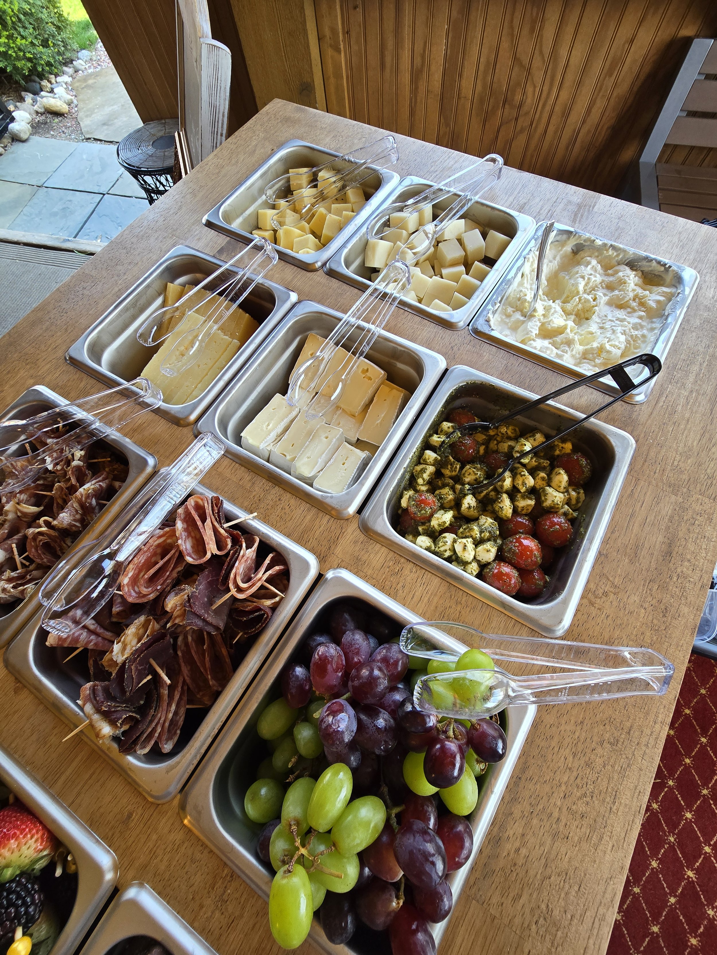 Strawberries, Grapes, Mixed Olives, Cornichons, Caperberries, Peppadew Peppers, Dried Turkish Apricots, Giardiniera, Pickled Green Beans, Crudite Veggies